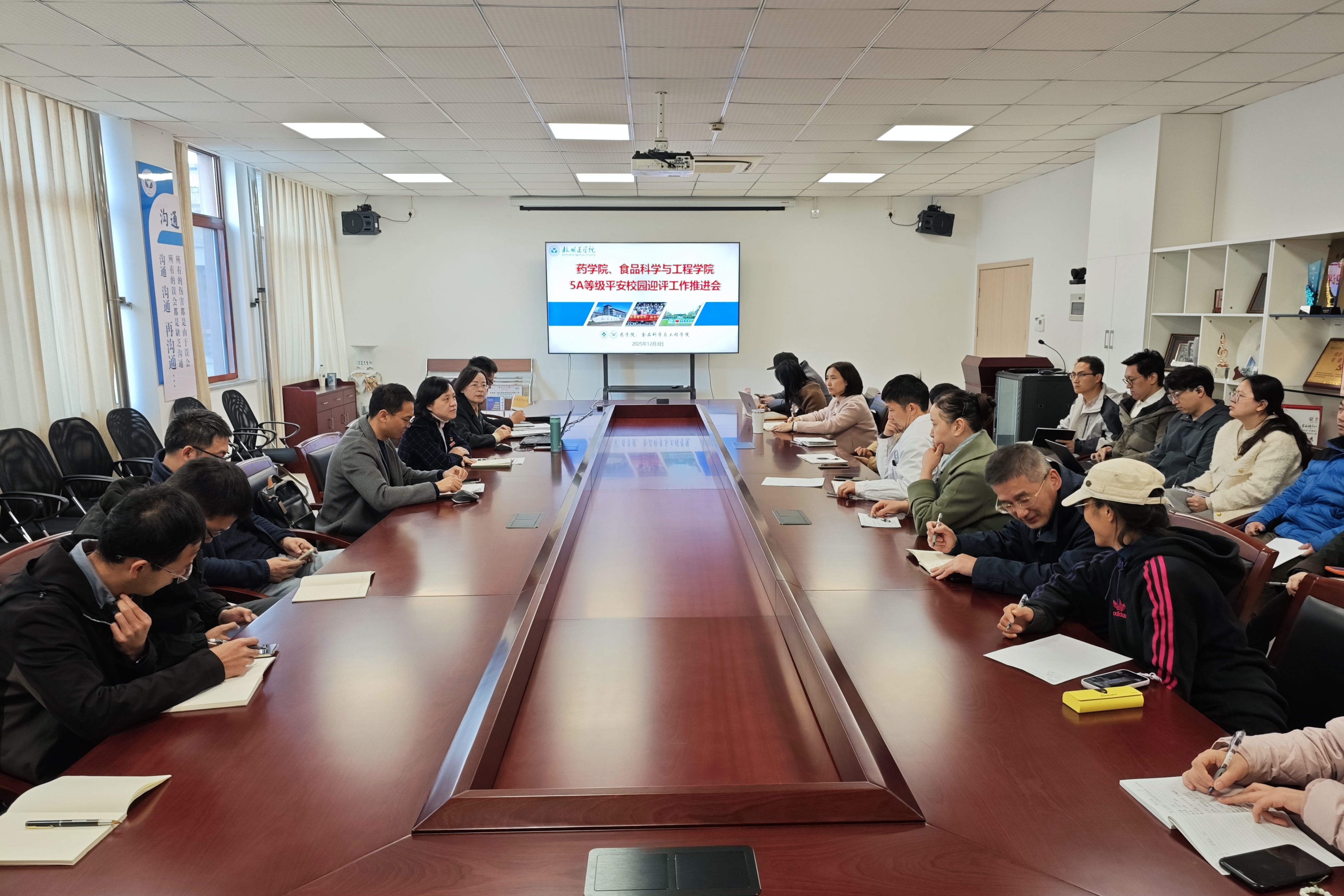 为全力备战5A等级平安校园现场考评,12月3日,药学院、食品科学与工程学院召开迎评工作推进会。会议围绕考评现场检查指标进行全面部署,动员全院师生凝聚共识、压实责任,以最佳状态迎接评估。学院领导班子、各实验室(团队)负责人、安全责任人及相关管理人员参会,会议由学院党委书记黄菊英主持。