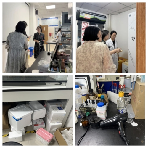在培训会之前,黄菊英书记带队,分别对两校区药食学院所属实验室进行了全面、系统的节前安全大检查,对发现的安全隐患提出了明确的整改意见和要求,责令限期整改到位,落实“检查-反馈-整改-复查”闭环,确保“国庆、中秋”双节的平安。