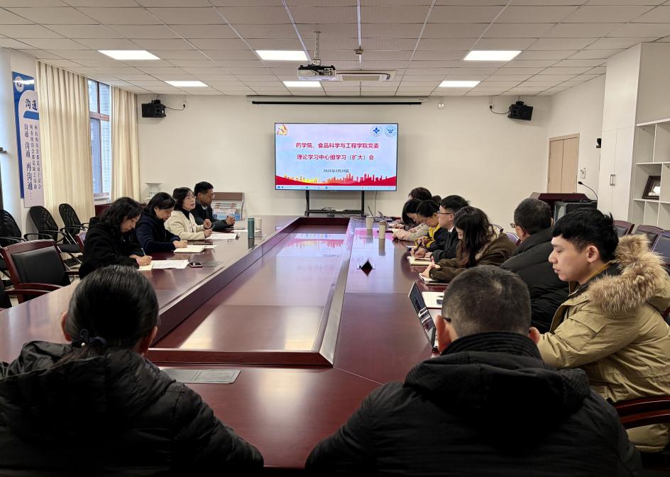 为深入学习贯彻2026 年全国教育工作会议精神与省“两会”精神,切实把思想和行动统一到中央、省委和校党委决策部署上来,2月28日,药学院、食品科学与工程学院党委召开理论学习中心组学习(扩大)会议,为新学期开好局,启好步。学院领导班子、党委委员、纪委委员、各党支部书记、专职组织员、分团委负责人参加会议,会议由学院党委书记黄菊英主持。